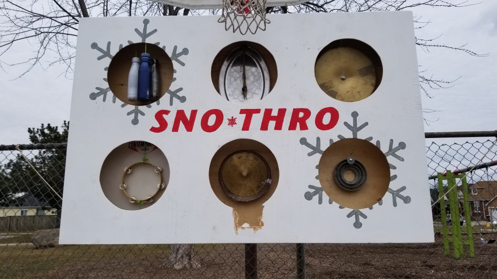Instructions: Throw snowballs (or felt balls provided in case there is no snow) at the sound targets to hear them.
