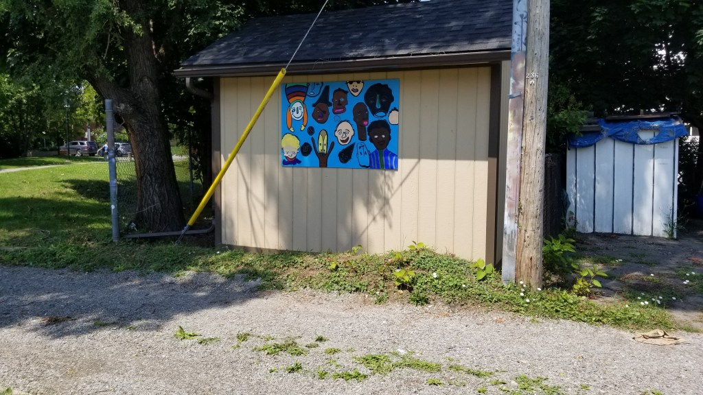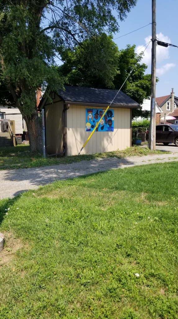 Nathan Eugene Carson’s mural, Legends Live On, pays homage to the legacy of dubpoet Klyde Broox, a long time Red Tree member. Klyde initiated the Creative Commons Wall in the parkette along the Pipeline Trail between Tragina and Weir. Both Nathan and Klyde spent time during the global pandemic teaching art, poetry, and community, and the first mural evolved from a series of workshops they led in collaboration with the Afro-Canadian Caribbean Association of Hamilton (ACCA). Nathan’s new billboard symbolizes the many souls Klyde taught and inspired throughout the years.