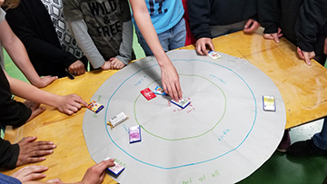 Youth from two neighbourhoods created personal clay tiles that mark their place in the community. Their tiles are installed in Andrew Warburton Memorial Park.